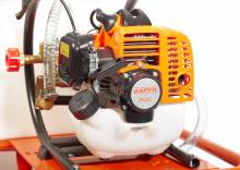 Carretilla sulfatadora con motor de 2 tiempos que rinde una potencia de 1,1 HP. Posee un enorme depósito de 100 litros de capacidad con chasis reforzado. La carretilla tiene una bomba de presión de 18 atmósferas con una capacidad de bombeo de 16 litros por minuto.